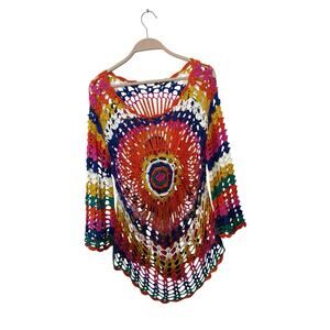Venus Open Knit Sweater Venus Crochet Long Sleeve Beach Cover Up Mult S/M