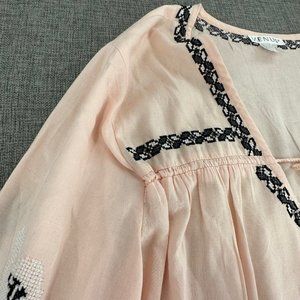 Venus Peachy Pink Top Embroidered Long Sleeve Boho Loose Fit Pleated Small