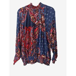 Venus Peasant Boho L Blouse Smock Top Paisley Colorful Fall Flattering Slimming