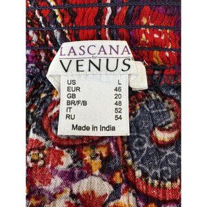 Venus Peasant Boho L Blouse Smock Top Paisley Colorful Fall Flattering Slimming. This colorful paisley print peasant top features a flowing, flattering silhouette, making it a perfect addition to a Boho-inspired fall wardrobe. This blouse is made from 95% Polyester and 5% Spandex and was made in Vietnam. Pit to Pit: 25 inches. Length: 27 inches.