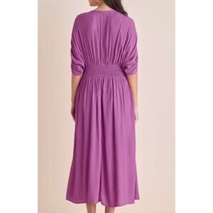 Venus Purple Textured Short Sleeve V-Neck Midi Dress Small Cattleya Orchid