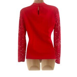 Venus Red Lace Long Sleeves Ruffle Knit Top Size S Christmas Holiday Evening
