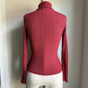 Venus Red Ribbed Knit Turtleneck Sweater – Women’s Small Made in USA