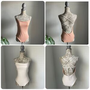 Reversible Bathing Suit by Venus in an Off White and Peach. Strappy back. Square neck. Gently worn with no visible flaws. Measurements in photos.