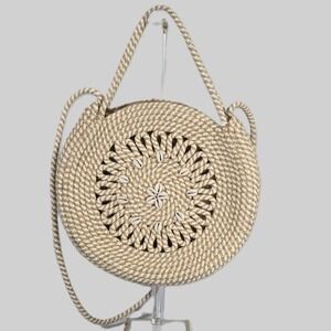 Venus Rope Woven Round Crossbody Bag Shell Accents Beach Boho Purse