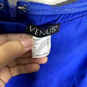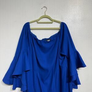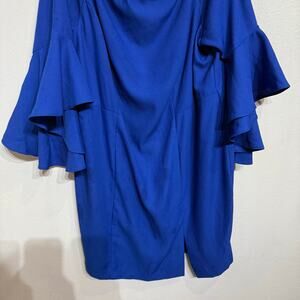 Venus Royal Blue Ruffle Bell Sleeve Lined Off Shoulder Sheath Mini Dress Sz 24