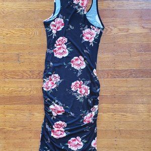 Ruoched on the sides and a beautiful floral print.