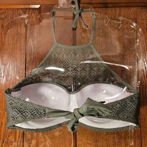 Venus Sage Green Halter Bikini Swim Top 32D 34C 36B Adjustable Boho Chic Beach