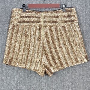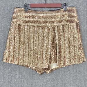 Venus Skort Womens 2X All Over Gold Sequin Striped Asymmetrical Mini Short Skirt
