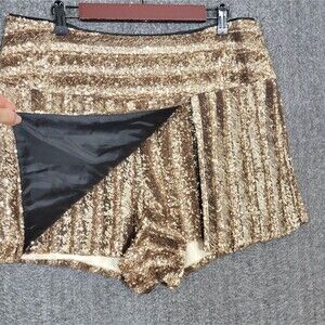Venus Skort Womens 2X All Over Gold Sequin Striped Asymmetrical Mini Short Skirt.