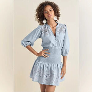 Venus Smocked Waist Eyelet Dress Light Blue Size 12 LNC