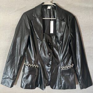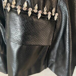 Venus Snake Faux Leather Snake-Embossed Blazer w/ Rhinestone Trim 12 NEW