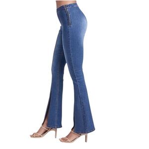flare jeans, split hem jeans, Venus jeans, women’s size 16 denim, boho bell bottoms, hippie style jeans, festival outfit pants, retro wide leg jeans, stretch flare denim, Y2K inspired jeans, DEJA