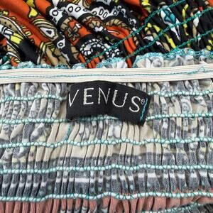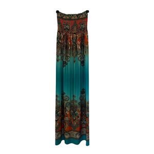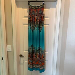 Venus Strapless Maxi Dress Size S Turquoise/Orange Paisley Fleur-de-lis Smocked