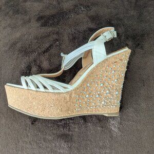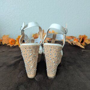 Venus Strappy Wedge Sandals white , diamond embellished wedges, strappy on top with middle strap of embellished diamondlike look, high wedge