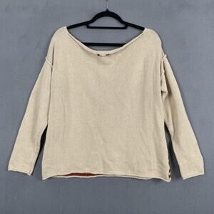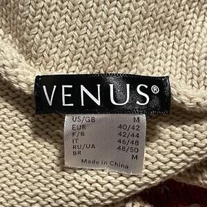 Venus Sweater Womens Medium Beige Red Blue American Flag Knit Pullover