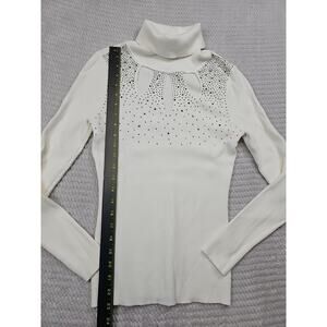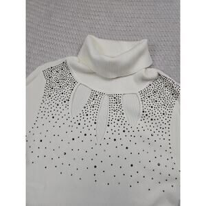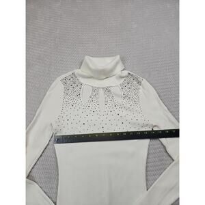 Venus Sweater Womens Small White Ribbed Turtleneck Rhinestones
