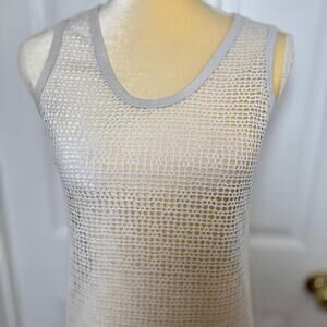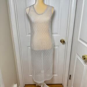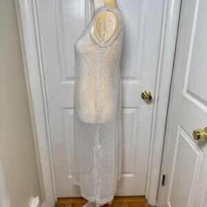 Venus Swimwear Open Knit Mesh Maxi Sleeveless White Coverup in size M. This coverup is in excellent used condition with no flaws. The style number is 3084. Perfect for your next beach vacation or poolside lounging! Get ready to turn heads with this beautiful and versatile piece. It is comfortable and breathable, making it ideal for hot summer days. This coverup is a must-have addition to your swimwear collection.