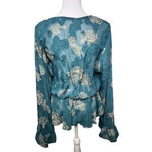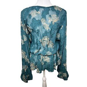 Venus Teal Floral Wrap Blouse Womens Long Sleeve V-Neck Size 12