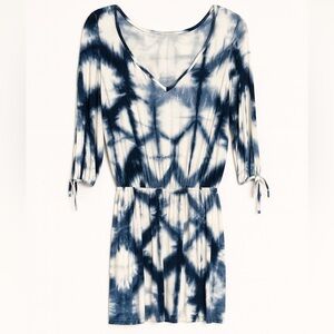 Venus Tie-Dye V-Neck Mini Dress Beach Coverup Blue White Bohemian Style XS