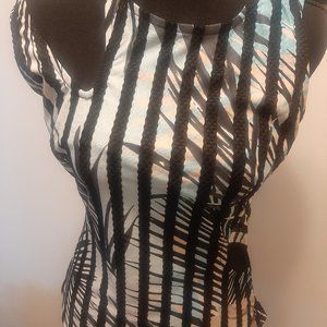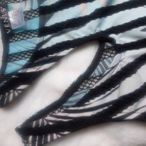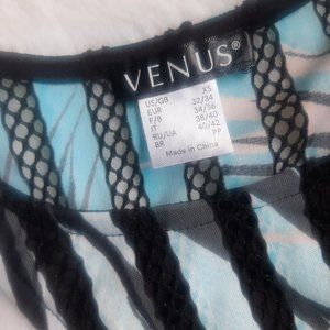 Cute tank from Venus with cut out shoulder and cut out on side. New condition not worn Print pattern in black, white and blue Size XS