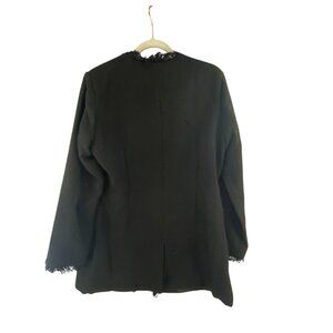 Venus Womens Black Fringe-Trim Textured Open Front Long Jacket Sz 12 Whimsygoth