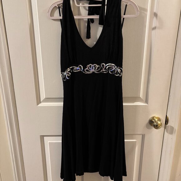 Venus Women's Black Halter-Neck Dress with Silver Sequin Embellishment Waist ~ M