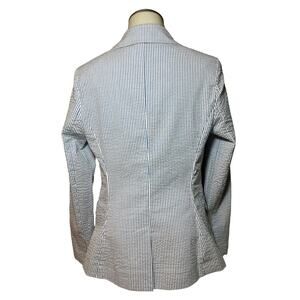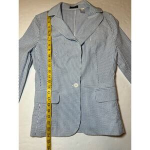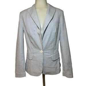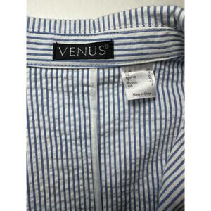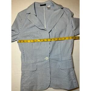 Venus Women’s Blazer Coat Jacket Size 2 Blue & White Seersucker 1 Button Career