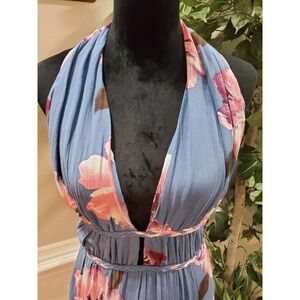 Venus Womens Blue Floral 100% Rayon Sleeveless Halter Neck Knee Length Dress 14.