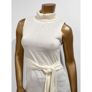 Venus Women's Cream Sleeveless Tie Waist Tunic Sweater Turtleneck Top Size S