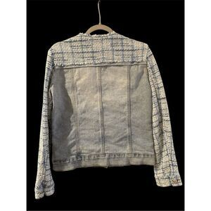 Venus Women's Frayed Button Front Mixed Media Tweed Denim Jacket Blue Size 6