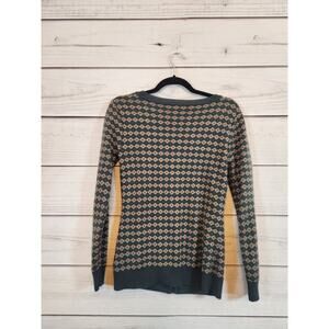 Venus Women's Green Tan Red Geometric Print Button Up Cardigan Size XS
