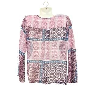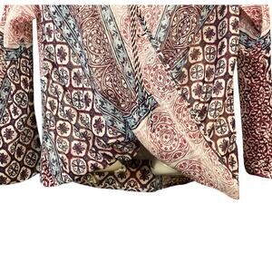 Venus Women's Multicolor Boho-Inspired Print Surplice Neckline Sheer Blouse SZ M