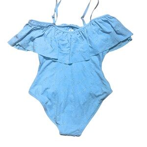 Venus Women’s One-Piece Swimsuit Off Shoulder Light Blue Eyelet Ruffle