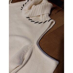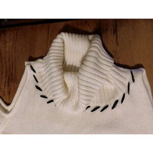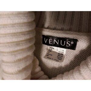 Venus Womens Plus 1x Cold Shoulder Turtleneck Sweater Bell Sleeve Fringe Cream