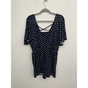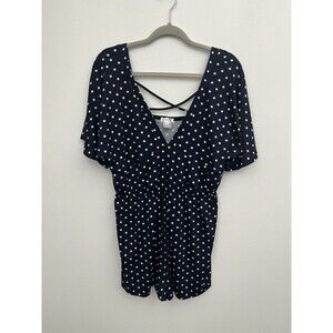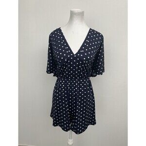 Venus Women’s Romper Large Polka Dot Elastic Waist V Neck Dolman Sleeve Stretch