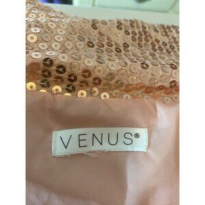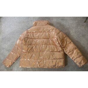 Venus Womens Rose Gold Sequin Puffer Jacket With High Collar & Zipper Large