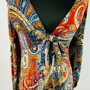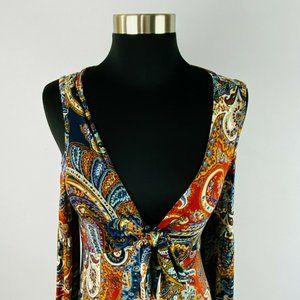 Venus Womens XS Cold Shoulders Tie Front Accent Bohemian Print Long Sleeve Top