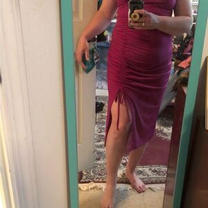 Venus XL magenta fuchsia ruched side mini dress adjustable tie straps .