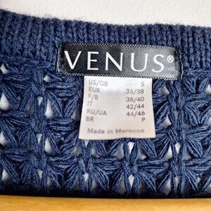 Venus Zip Front Sweater Size S. Navy Blue Long Sleeve Waffle Knit Pullover