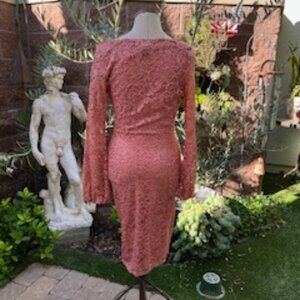 Venus dress, size 4, sequin, color apricot, brand new, never worn, perfect condition, 90% nylon, 10% spandex, polyester lining, side zip,