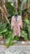 This beautiful piece is a soft pink and brown with a silver Lorax stripe running through it that flashes gold at times as well. The sleeves can gather at the top to a shorter sleeve or you can wear them the three-quarter length shown and they end in a ruffle. The skirt also ends in a ruffle and is asymmetric so there is a front close fairly high. That pit to pit measurement will stretch easily to 24 inches in excellent condition.