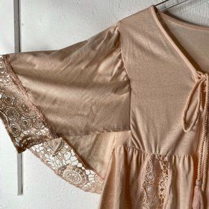 Venus peach lacy peasant top blouse size medium