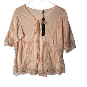 Venus peach lace peasant top blouse NEW size M