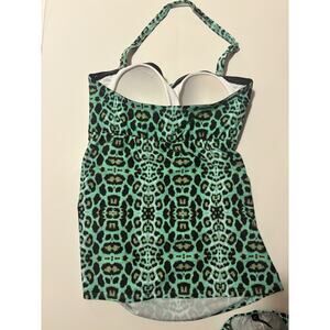Venus sexy and slimming high waisted tankini teal and gold leopard print size 14