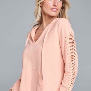 Pink Venus sweatshirt with cutout pearl detail sleeves. Size L, brand new.