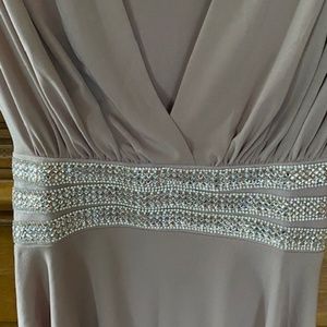 Pretty top with glittery waistband and tie back. Size M. Hem is lower in the back. The top has been taken in under the armpits a bit. (See last two photos).