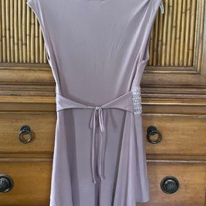 I would say it’s some type of mauve. I love the top, but it’s simply too big on me. I even took it in under the armpits, but it’s still too big. It’s very finger flattering though with the tie in the back.