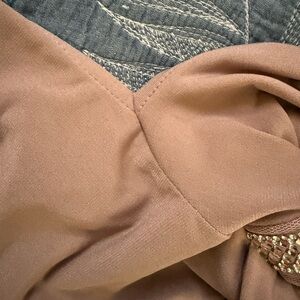 I added two more photos of the underarms where I took it in. The top almost looks peachy mauve. It’s a hard to describe color.