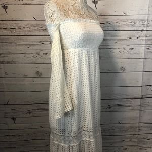 Venus white long eyelet with embroidery cold shoulder bell sleeves size 10